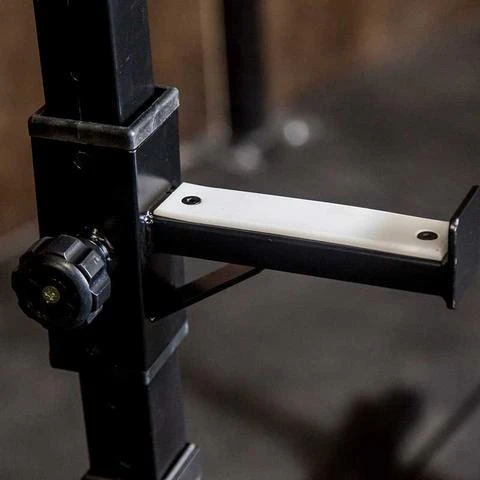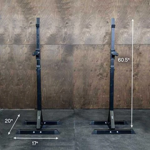 The OneFitWonder Econ 2 Piece Squat Stand fills a hole in the marketplace for a solid, inexpensive squat stand with some nice bonus features. These stands combined weigh 37lbs and being a 2-piece stand, they are ultra portable. These also feature a bench / spotter arm lined with ABS Plastic that allows you to pull from much lower than the usual minimum of indy squat stands.