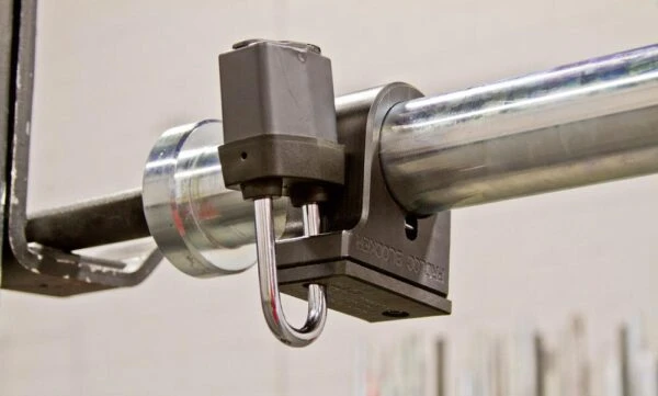 The Prolocâ„¢ Blocker is great if you have to store gear in a public gym. The Blocker locks one end of the bar which renders the bar useless. Use a chain to secure your bar to a fixed object. You can also use it on weight trees if you don’t want anyone using your plates.