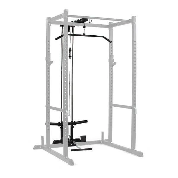 The Lat Tower Attachment is a quick and easy way to turn your T-2 Series Power Rack into a traditional lat pulldown machine. Unlike a typical lat pulldown machine you will save space with this pulley system that allows for the same training benefits. The attachment includes a lat pulldown handle and a low row handle to be able to target your arms and back in a variety of ways.